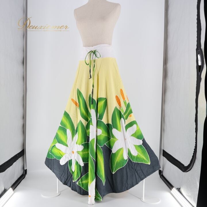 #フラダンス #フラダンス衣装 #ダンススカート #アシンメトリースカート #華やかデザイン #レーヨン100 #ウエスト調節可能 #ビビッドカラー #ダンスライフ #ハワイアンスタイル #フラスタイル #ダンスパフォーマンス #女性用トルソー #フラダンス教室 #ダンスファッション #ステージ衣装 #異素材使い #カラフルスカート #衣装レンタル #ENUTSU