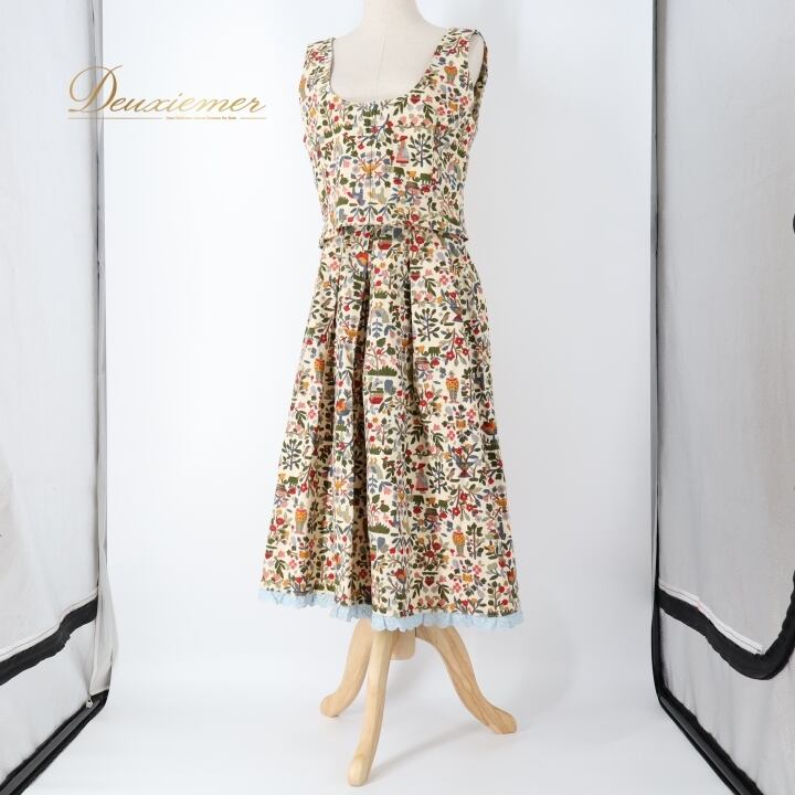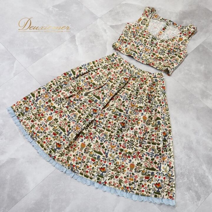 フォークダンス 衣装 ベスト スカート セット クリーム系 花柄 総柄 鳥 馬 動物柄 カラフル チロリアン チロルスカート 赤 水色 黄 緑 カントリー かわいい イベント ダンス衣装 練習 レッスン レッド系 ブルー系 ピンク系 イエロー系