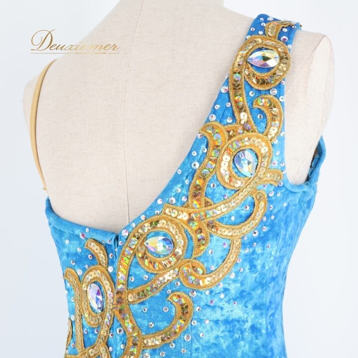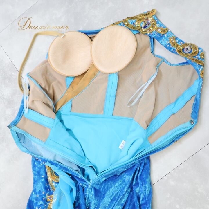 #社交ダンス #ダンス衣装 #ダンスドレス #ワンピース #HISAYA #レオタード #ベロアドレス #女性用トルソー #青金 #おしゃれ #ダンスコスチューム #伸縮性 #ファスナー #胸パッド #ダンスファッション #パーティードレス #総丈124cm #ウエスト34cm #ダンススタジオ #ENUTSU