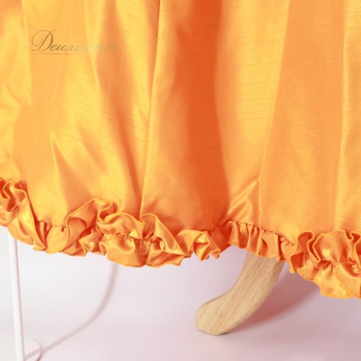 フラダンス 衣装 ワンピース ドレス オレンジ系 パンドール 日本製 無地 シンプル Paondor 光沢感 フリル ハワイアン アロハ フラ ダンス レッスン 練習 フレアスカート 華やか 鮮やか かわいい おしゃれ 上品 大人っぽい フラダンス衣装 オレンジドレス 光沢ドレス パーティードレス シンプルドレス ハワイアン衣装 フレアシルエット 衣装ドレス 練習用ドレス カジュアルドレス フェミニンスタイル