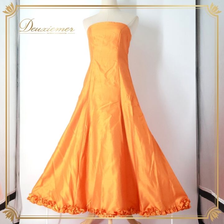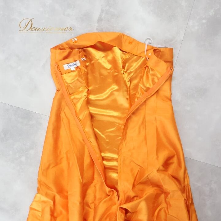 #フラダンス #衣装 #ワンピース #ドレス #日本製 #パンドール #オレンジ #光沢感 #ポリエステル #ファスナー #女性用トルソー #ハワイアン #パーティー衣装 #レッスン #ダンス #フラ #フラダンス衣装 #可愛い #サイズ1 #ENUTSU