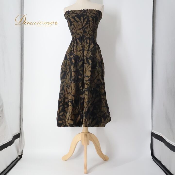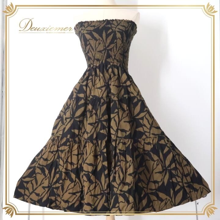 フラダンス 衣装 ワンピース ドレス ブラック系 Lahaina ハワイアンプリント アロハ フラ ダンス レッスン 練習 華やか かわいい おしゃれ 上品 大人っぽい フレア スカート ブラウン系 黒 茶 練習着 レッスン着 フェミニン かわいらしい スタイリッシュ ヴィンテージ ハワイ風 ゴージャス スポーツウェア
