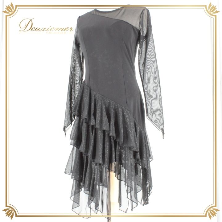 社交ダンス 衣装 ラテン ドレス ワンピース レッスンウェア パーティドレス Create-Sun クリエイトサン 黒 レース 長袖 ブラック系 ダンスウェア ステージ衣装 フォーマル 体型カバー おしゃれ 伸縮性 ソフト素材 雰囲気アップ 大人用 プレゼント 衣装レンタル イベント 豪華 大人かわいい 着心地良い シンプル ワンピースタイプ ルンバ クラシック 可愛い