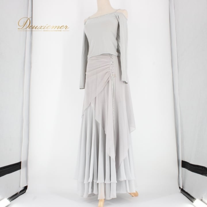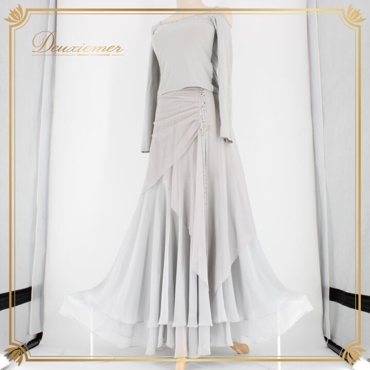 #社交ダンス #ダンス衣装 #セットアップ #ライトグレー #ラインストーン #ポリエステル #ファッション #ダンスウェア #ダンスコスチューム #女性用 #おしゃれ #ダンススタイル #エレガント #シンプル #伸縮性 #ウエストゴム #トルソー #ダンスレッスン #パフォーマンス #ENUTSU