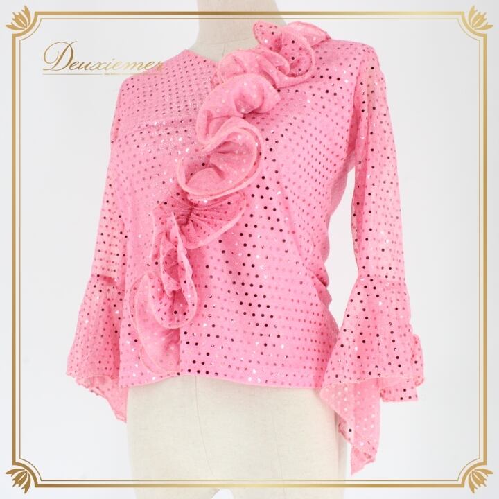 #社交ダンス #ダンス衣装 #ダンスウェア #トップス #ピンク #伸縮性 #動きやすい #おしゃれ #女性用 #トルソー #ファッション #スポーツウェア #ダンススタイル #華やか #上品 #ボディライン #衣装 #パフォーマンス #スタイルアップ #ENUTSU
