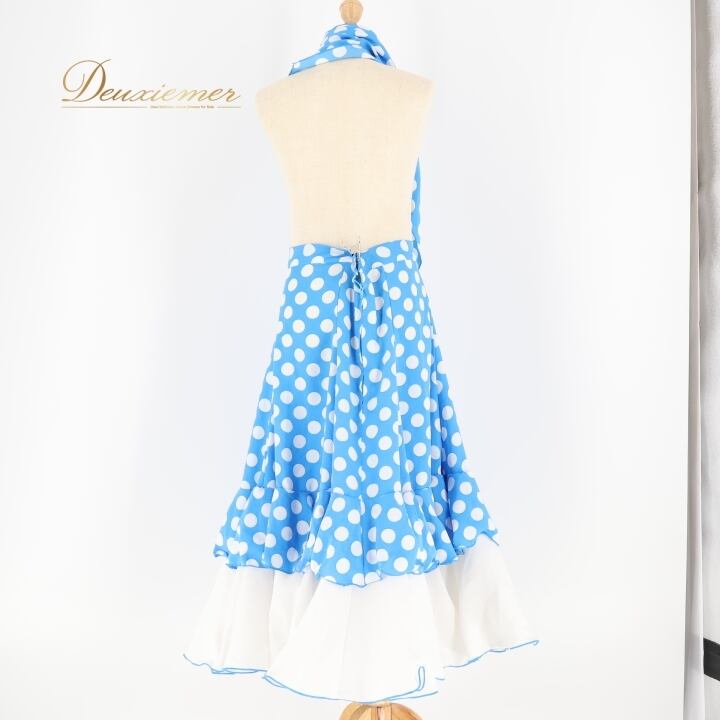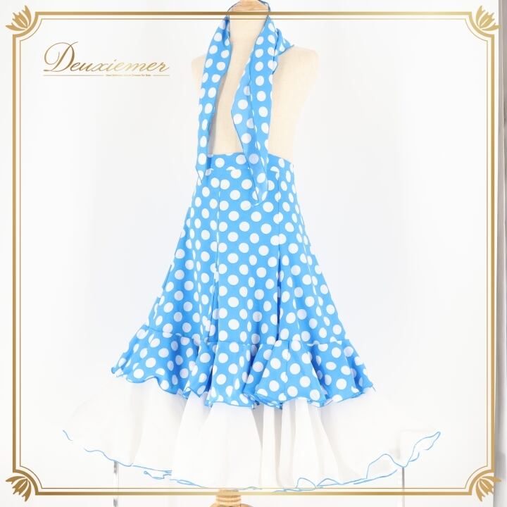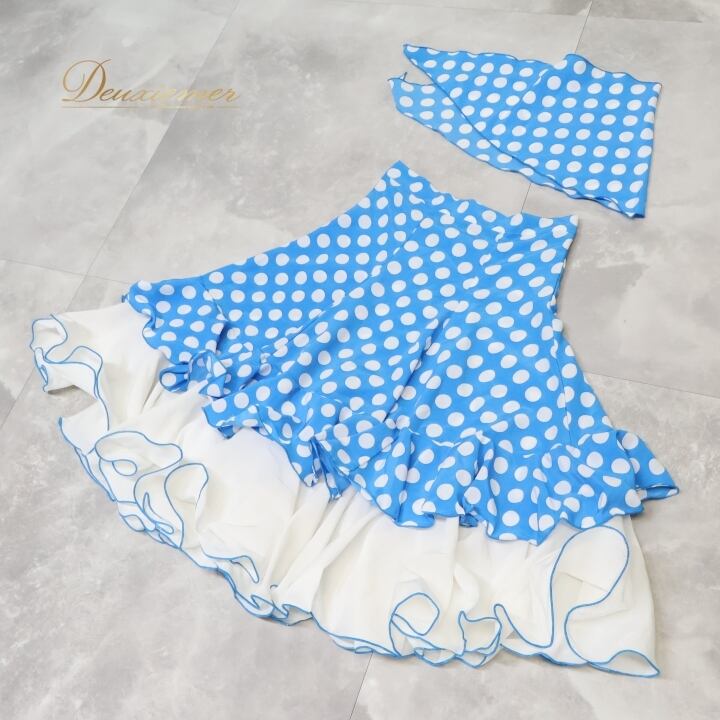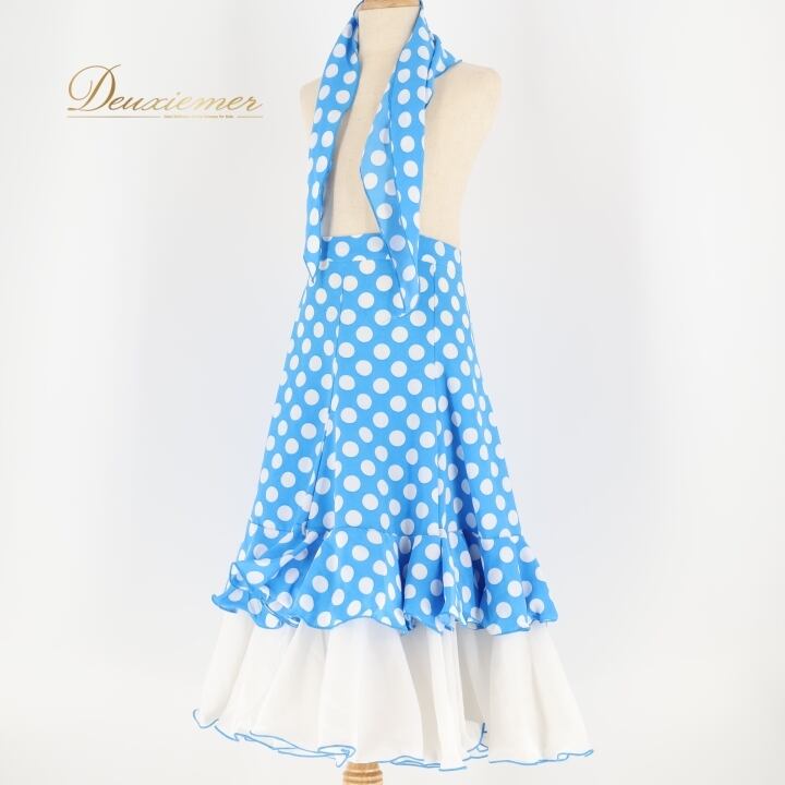 フラメンコ 衣装 ファルダ スカート シージョ 水玉 フリル ボランテ ドット 水色 白 かわいい ダンス パーティ 発表会 舞台 ステージ ホワイト系 ブルー系 子供用 おしゃれ コスチューム フレア かわいらしい フォーマル ステージ衣装 パフォーマンス