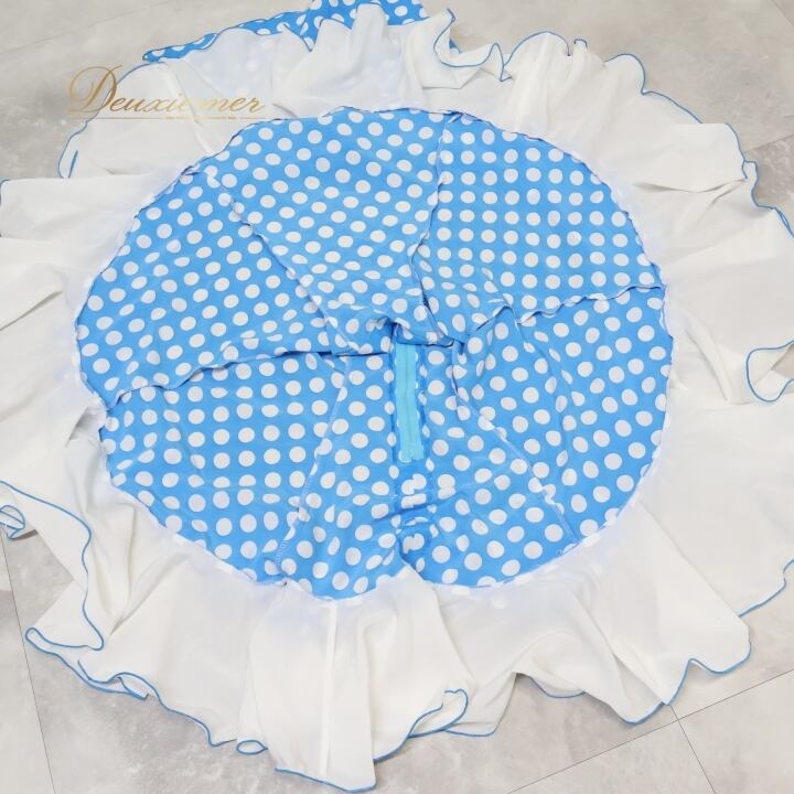 #フラメンコ #衣装 #ファルダ #スカート #シージョ #子供服 #水色ドット #キッズファッション #フラメンコ衣装 #ダンス衣装 #子供ダンス #カスタム衣装 #女の子服 #ファッション #子供用品 #スカートコーデ #ドット柄 #おしゃれ #パフォーマンス #ENUTSU