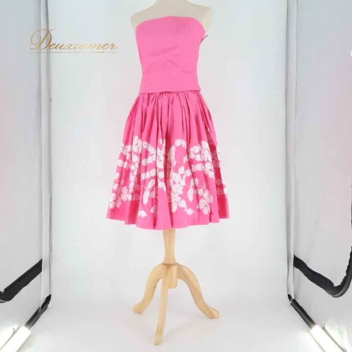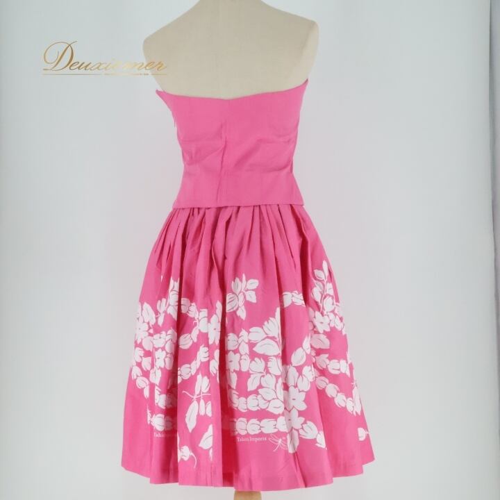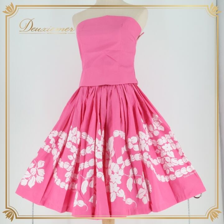 フラダンス 衣装 ツーピース セットアップ 上下セット タヒチインポーツ ピンク系 TAHITI IMPORTS チューブトップ 花柄 かわいい 華やか 鮮やか 明るい 白 ハワイアン アロハ ハワイアンプリント フラ ダンス レッスン 練習