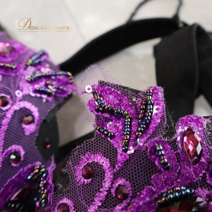 #ベリーダンス #オリエンタル衣装 #ダンス衣装 #パープル #ラインストーン #ビーズ #コスチューム #ダンスパフォーマンス #トルソー #スリットスカート #ストラップ #ウエストゴム #ファッション #女性用 #衣装 #ダンススタイル #エスニックファッション #派手な衣装 #パーティードレス #ENUTSU