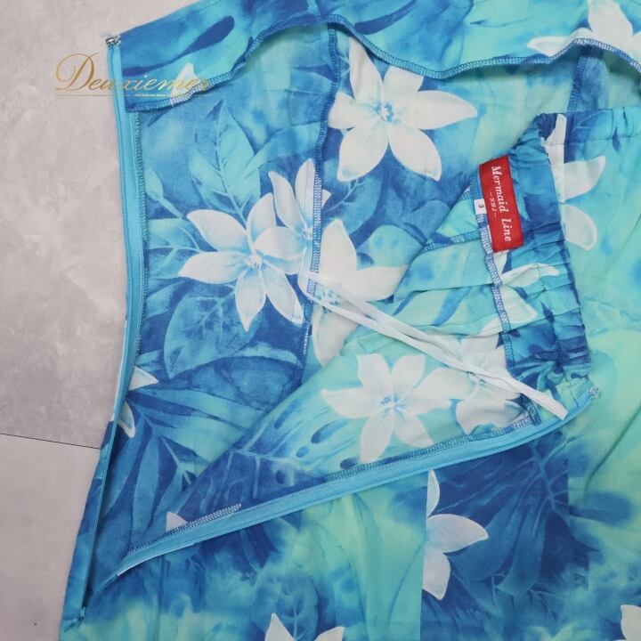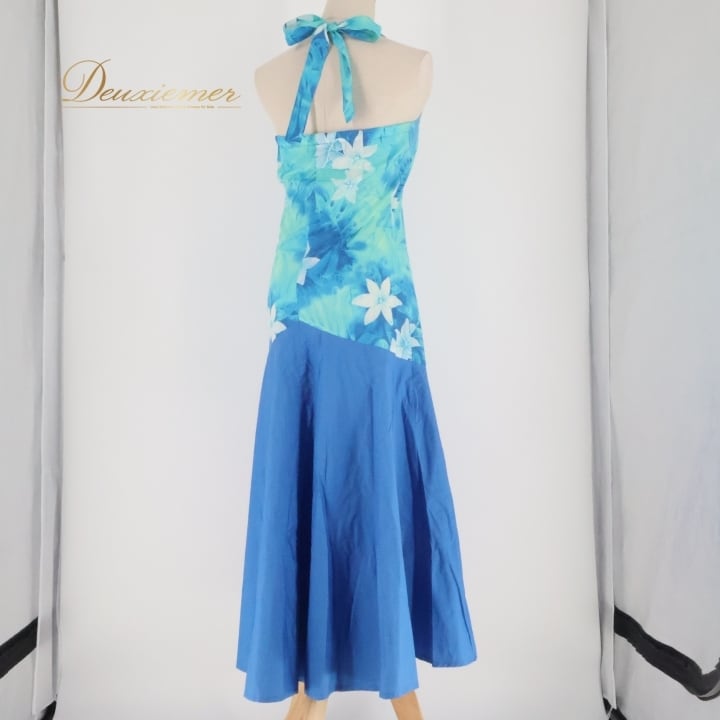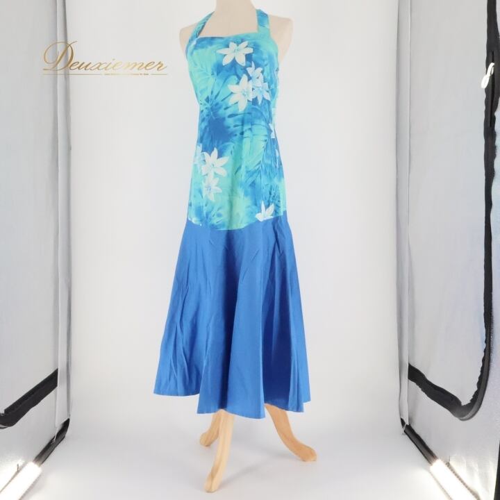 #フラダンス #衣装 #ワンピース #ドレス #日本製 #ホルターネック #爽やか #マーメイドライン #エムエムジェイ #ブルー #トルソー #ファッション #ダンス衣装 #サイズ3 #総丈109cm #快適 #春夏 #パーティー #イベント #ENUTSU