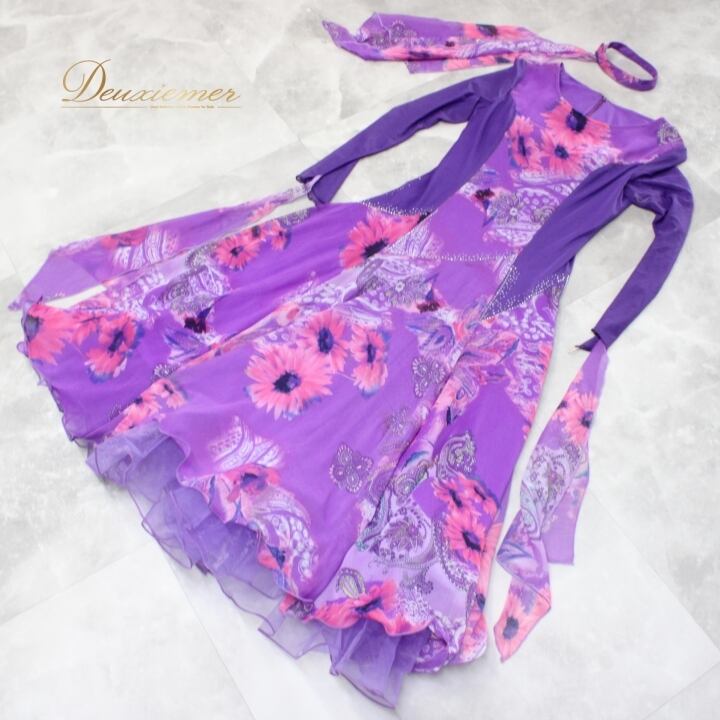 #社交ダンス #ダンス衣装 #舞台衣装 #パープルドレス #ラインストーン #フロート付き #二重スカート #ダンスファッション #女性用ドレス #ダンスパフォーマンス #パーティードレス #フォーマルウェア #ダンススタイル #ドレスコーデ #ダンスライフ #デザインドレス #おしゃれドレス #軽やかな舞 #ダンスシルエット #ENUTSU