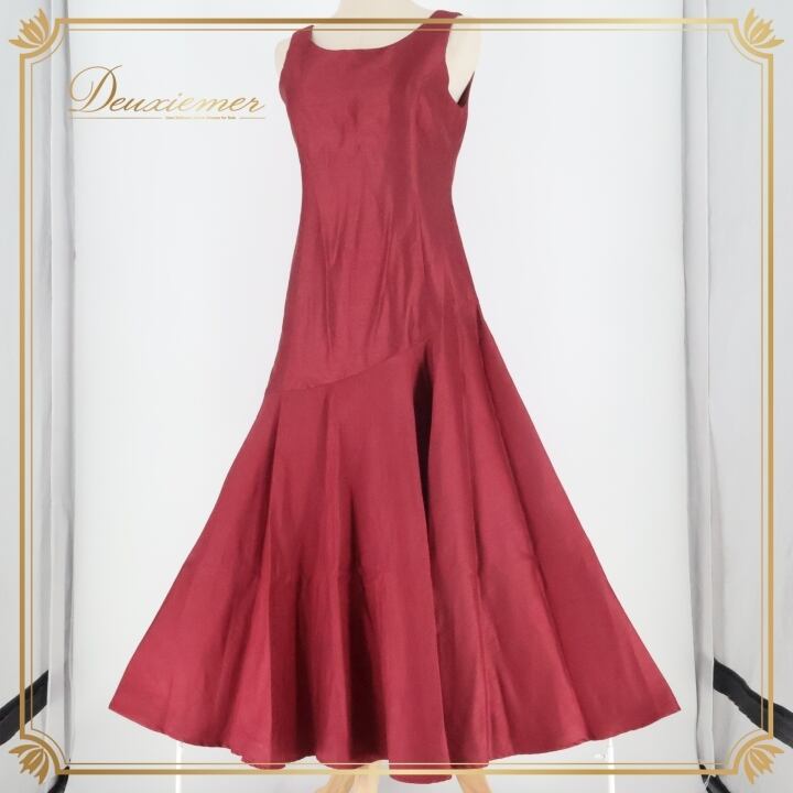 #フラダンス #衣装 #ワンピース #ドレス #ダンス衣装 #深い赤 #シンプル #華やか #ポリエステル #コットン #大人っぽい #ブルーヘブンカンパニー #背面ファスナー #無地 #トルソー #女性用トルソー #ファッション #秋冬コーデ #カジュアル #ENUTSU