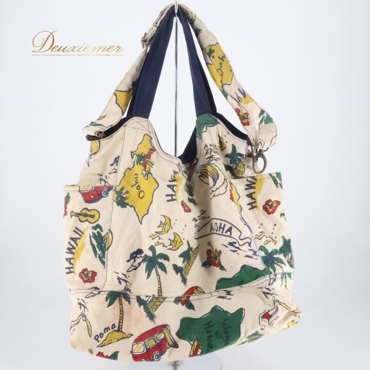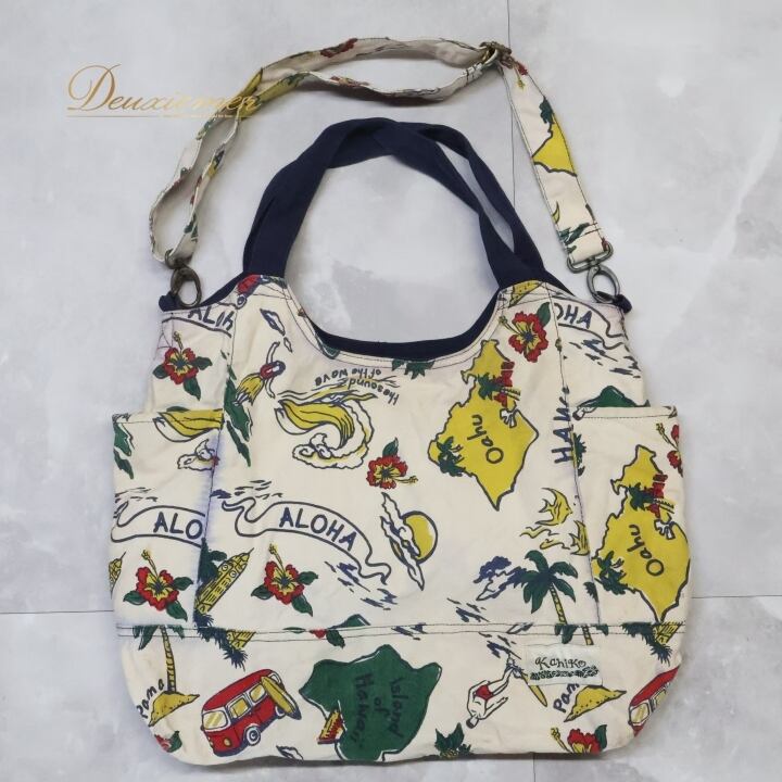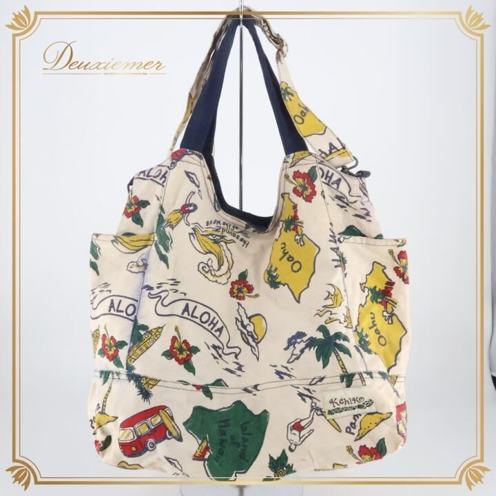フラダンス 小物 バッグ トートバッグ カヒコ Kahiko ホワイト系 肩掛け カラフル 白 青 かわいい ハワイアン アロハ ハワイアンプリント フラ ダンス レッスン フラダンスバッグ トート ユニークデザイン ハワイ風 おしゃれ 旅行用カバン 軽量