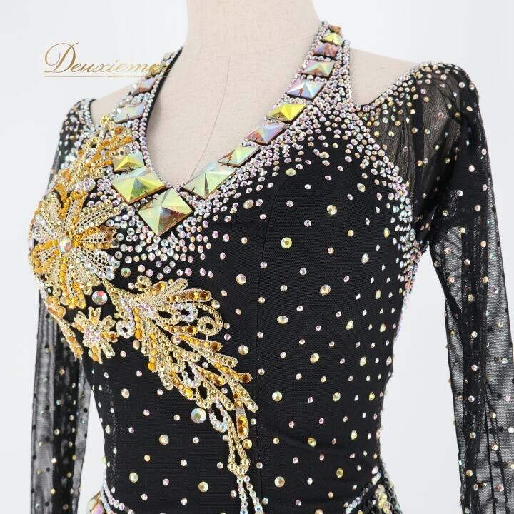 #社交ダンス #ダンスドレス #ラテンドレス #ダンス衣装 #衣装 #ドレス #ファッション #ポリエステル #パーティードレス #舞台衣装 #トルソー #ダンス #軽やか #黒金 #女性用 #スタイル #バレエ #スポーツ #ダンスライフ #ENUTSU