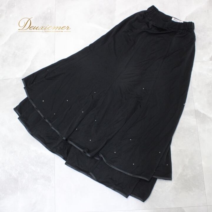 社交ダンス 衣装 スタンダード スカート レッスンウェア Dance Fashion Pier ダンスファッションピア 黒 無地 ブラック系 練習着 ダンス スカート おしゃれ 練習用 ダンス衣装 大人 女性 用 練習 トレーニング 伸縮性 ラインストーン シンプル クラシック ひざ下丈 フィット感 上品 スタイル コーディネート