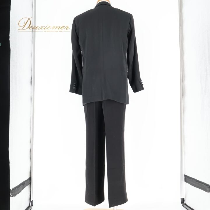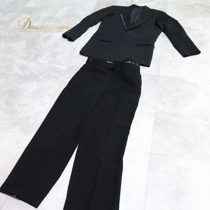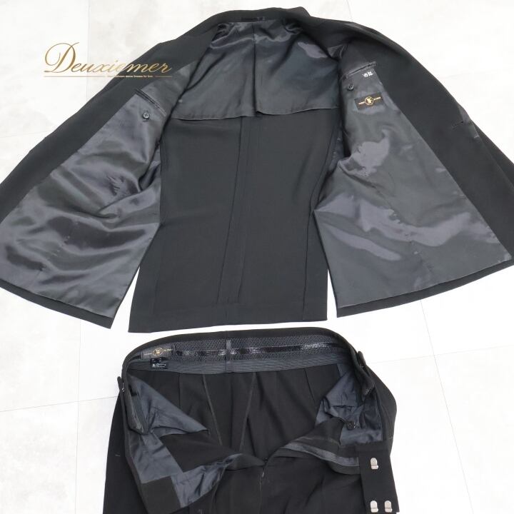 上下若干黒の色味が違います。スラックスの方がやや黒が強いです。