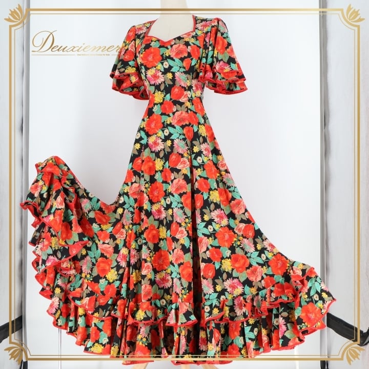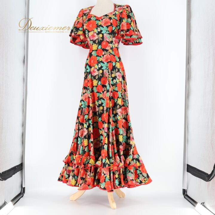 #フラメンコ #フラメンコ衣装 #衣装 #ドレス #ワンピース #Chacott #チャコット #日本製 #花柄 #フリル #ダンスドレス #女性用 #パーティードレス #コスチューム #ファッション #着物風 #カラフル #エレガンス #特別な日 #ENUTSU