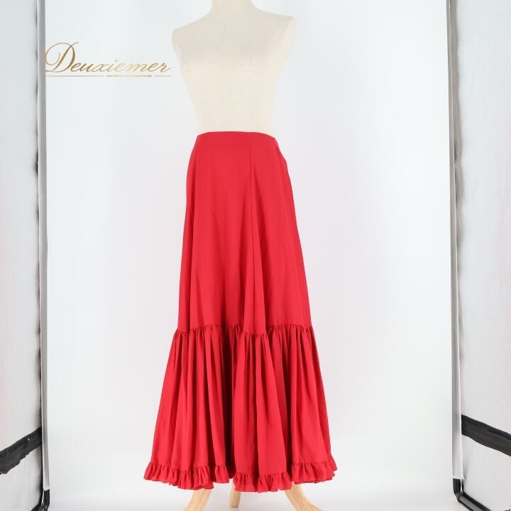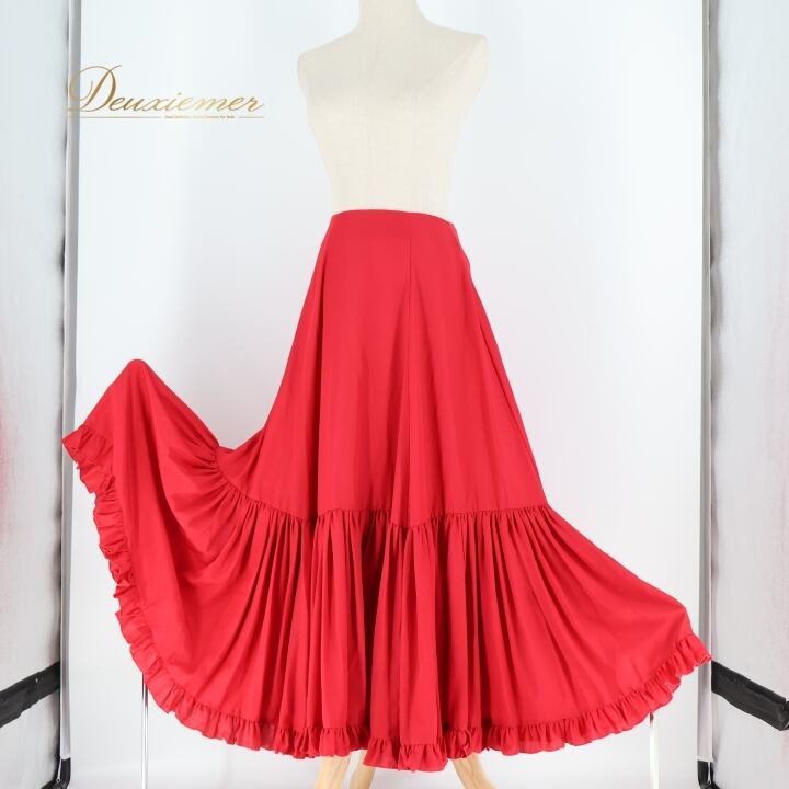フラメンコ 衣装 チャコット Chacott ペチコート ファルダ スカート 赤 無地 フリル 日本製 レース 軽い 薄い レッスン 練習着 レッド系 フラメンコスカート ロングスカート ダンス衣装 発表会 踊り用 おしゃれ シンプル スタイリッシュ 薄手 大人用 レディース用