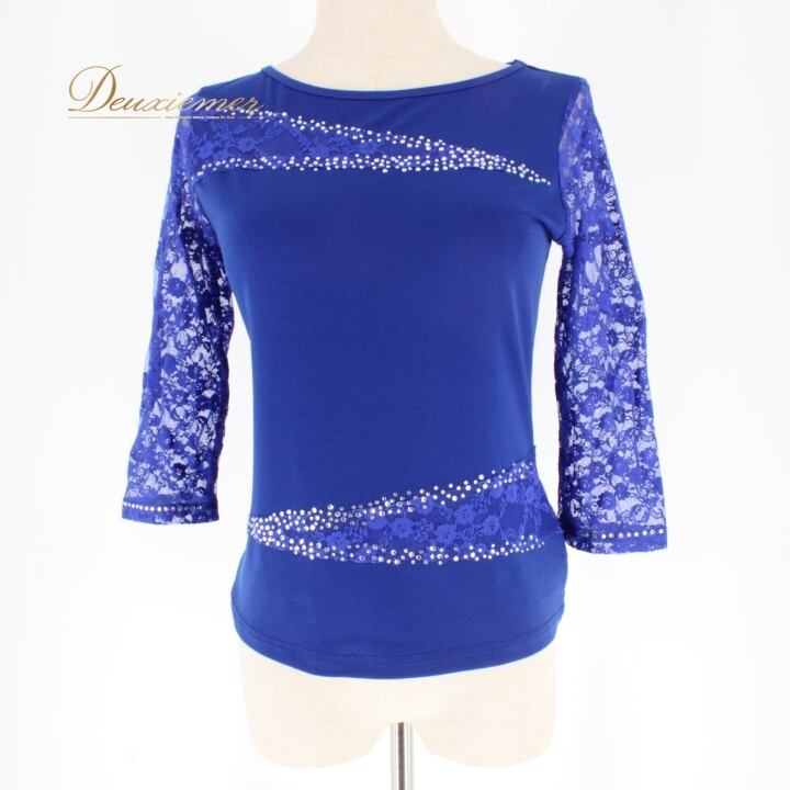 #社交ダンス #ダンス衣装 #トップス #ロイヤルブルー #花柄 #レース #ラインストーン #スタイリッシュ #フィットネス #女性ファッション #ダンススタイル #パフォーマンス衣装 #伸縮性 #エレガント #おしゃれ #ダンス用品 #ブライダルダンス #ファッションアイテム #ダンス衣装販売 #ENUTSU