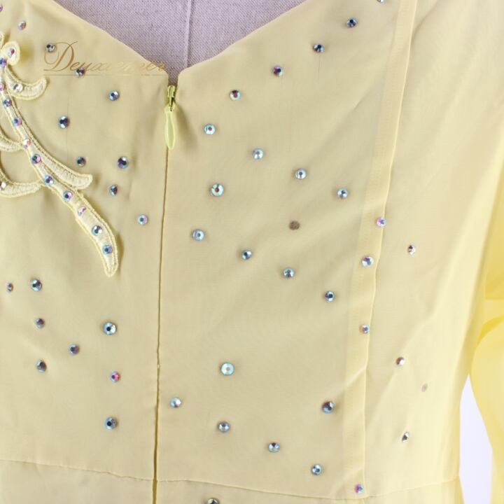 社交ダンス 衣装 スタンダード ドレス ワンピース パーティドレス U:NA ユーナ 黄色 イエロー系 ラインストーン 長袖 シンプル ステージ衣装 ふんわり 二重スカート 光る 洗える コスチューム セクシー フォーマル ダンスパーティー 大人用 レディース おしゃれ おすすめ イベント用 演出衣装 体型カバー 上品 かわいい 明るい色 高品質
