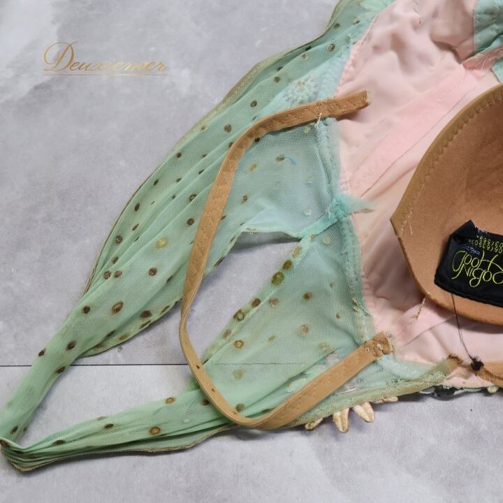腹部やスカート等広範囲で黄ばみ、シミ、色褪せ御座います。