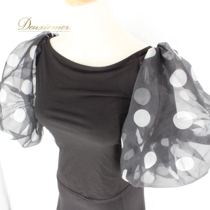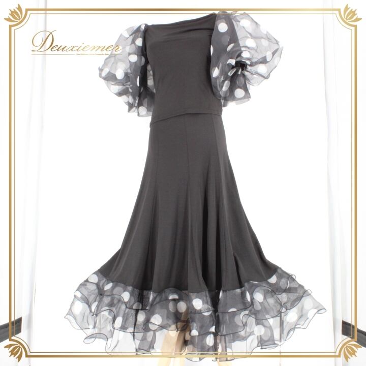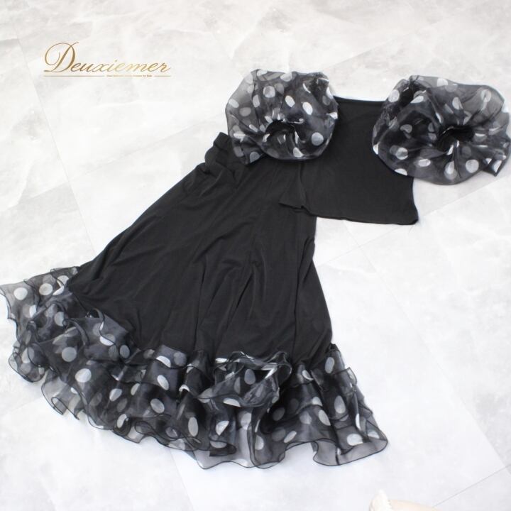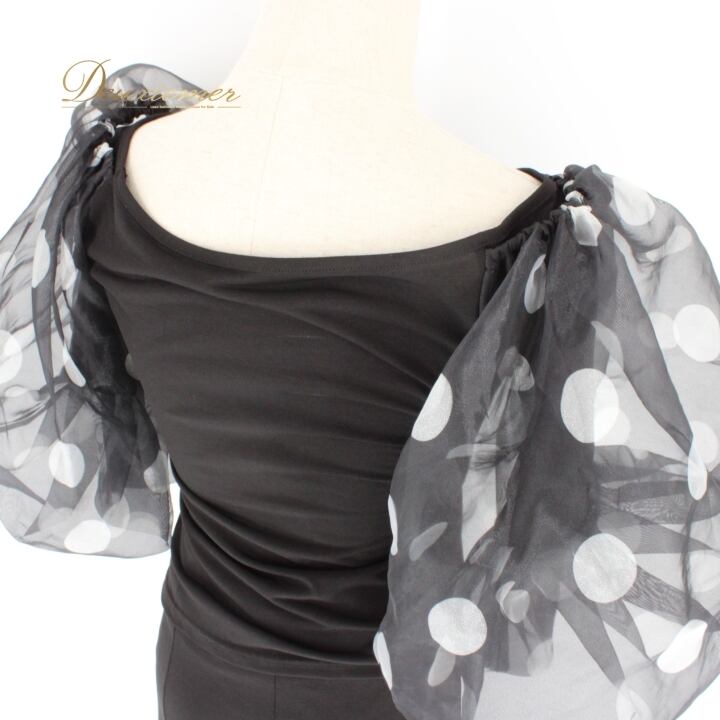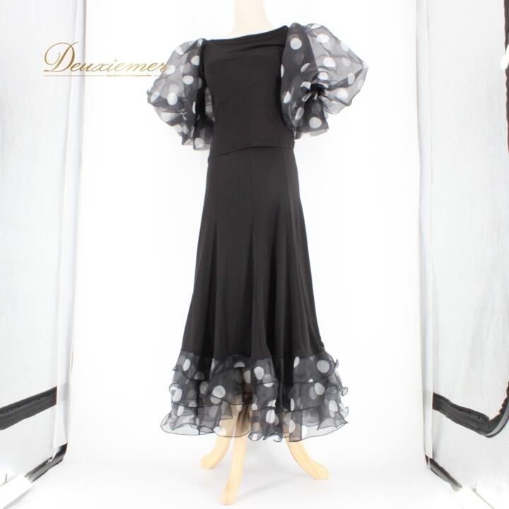 #社交ダンス衣装 #ダンス衣装 #セットアップ #アクティブウェア #レトロスタイル #ドット柄 #ポリエステル #身体にフィット #ブラックホワイト #かわいいファッション #パフォーマンスウェア #ダンスコスチューム #グラマラス #軽量 #伸縮性 #スカート #ウエストゴム #ダンスライフ #踊る #ENUTSU