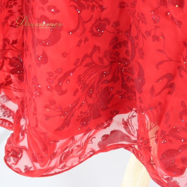 社交ダンス 衣装 スタンダード ドレス ワンピース レッスンウェア パーティドレス 赤 Mamin マーミン レッド系 花柄 派手 上品 フロッキー エレガント ドレッシー スカート フレア シルエット 派手さ 上品さ フォーマル イベント 競技用 体型カバー おしゃれ レディース パーティー 特別な日 デザイン 品質 重厚感 高級感 パフォーマンス