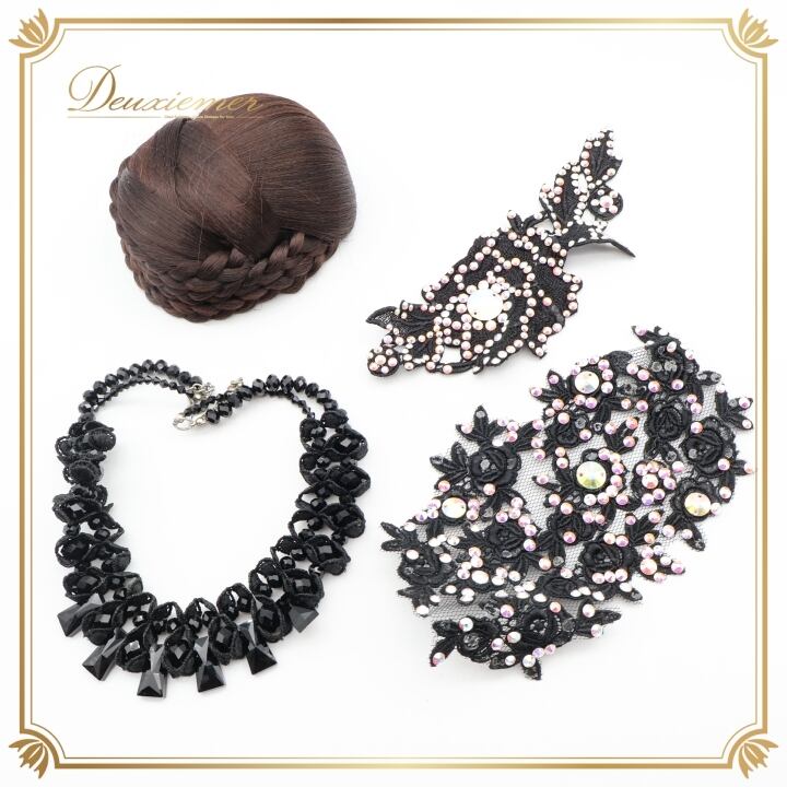 社交ダンス 小物 まとめ売り セット シニヨンカップ モチーフ ネックレス 黒 デモ 競技 パーティ 発表会 上品 ダンス レディース 飾り 装飾 ブラック系 ブラウン系 コスチューム ヘアアクセサリー アクセサリー おしゃれ ダンス用品 フォーマル 競技用 ダンスイベント 装飾品 シニヨン ヘアスタイル