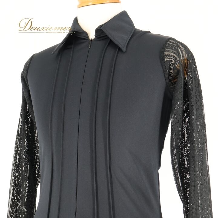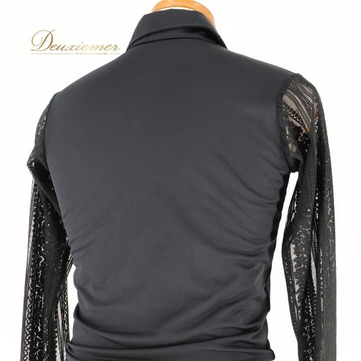 社交ダンス 衣装 SEKINE セキネ メンズ シャツ ブラウス トップス 黒 レース ラテン デモ 競技 パーティ 発表会 長袖 ブラック系 競技用 衣装 ストレッチ フォーマル パーティー おしゃれ メンズウェア ブラック トップス ラテンダンス