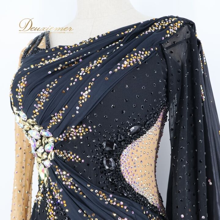 #社交ダンス #衣装 #ワンピース #ドレス #ダンス衣装 #ファッション #高級感 #ゴージャス #レオタード #ファスナー #スカート #トルソー9号 #ダンス #パーティー #イベント #黒ゴールド #デザイン #女性用 #フラメンコ #ENUTSU