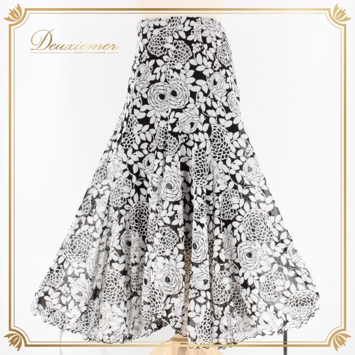 #社交ダンス #ダンス衣装 #スカート #ダンスファッション #ブラックホワイト #花柄 #ウエストゴム #伸縮性 #ポリエステル #エレガント #トルソー #ダンススタイル #女性用 #フィット感 #ステージ衣装 #ダンスイベント #社交ダンス愛好者 #オシャレ #コーディネート #ダンスマニア #ENUTSU