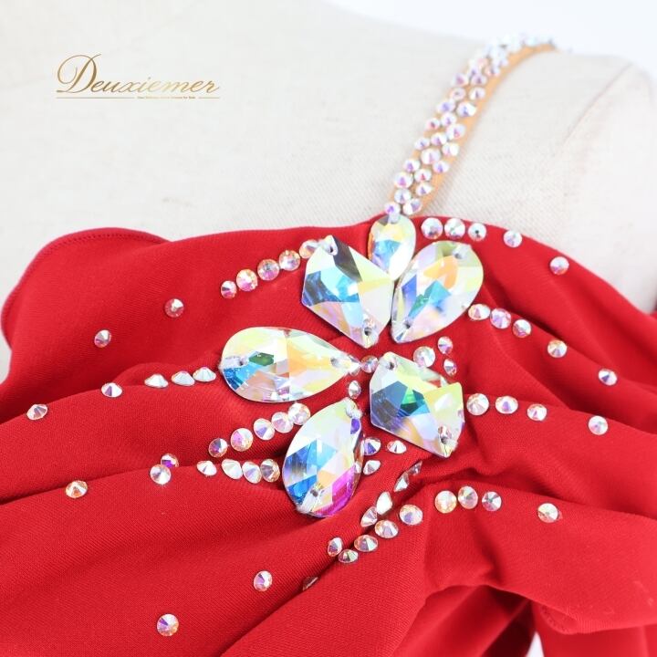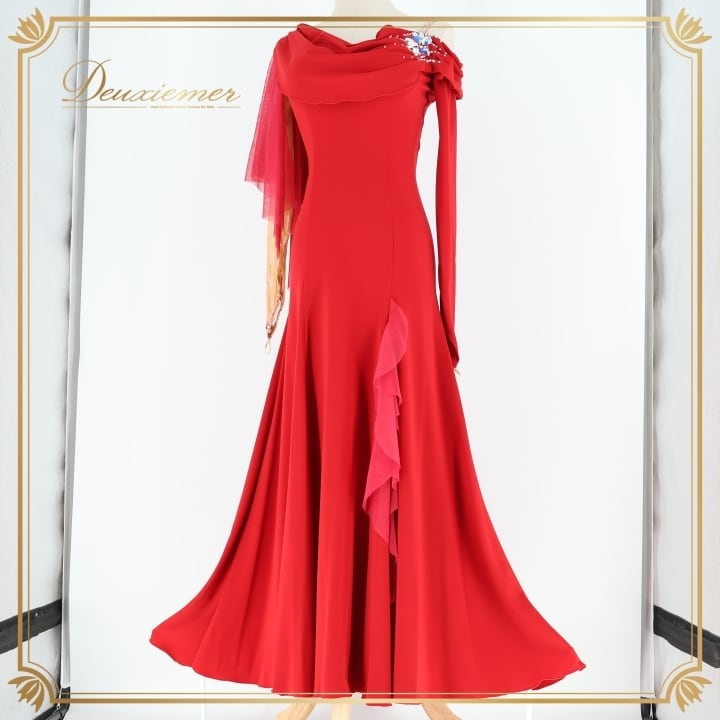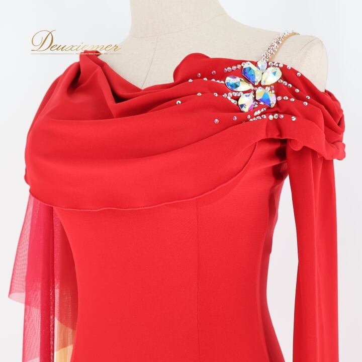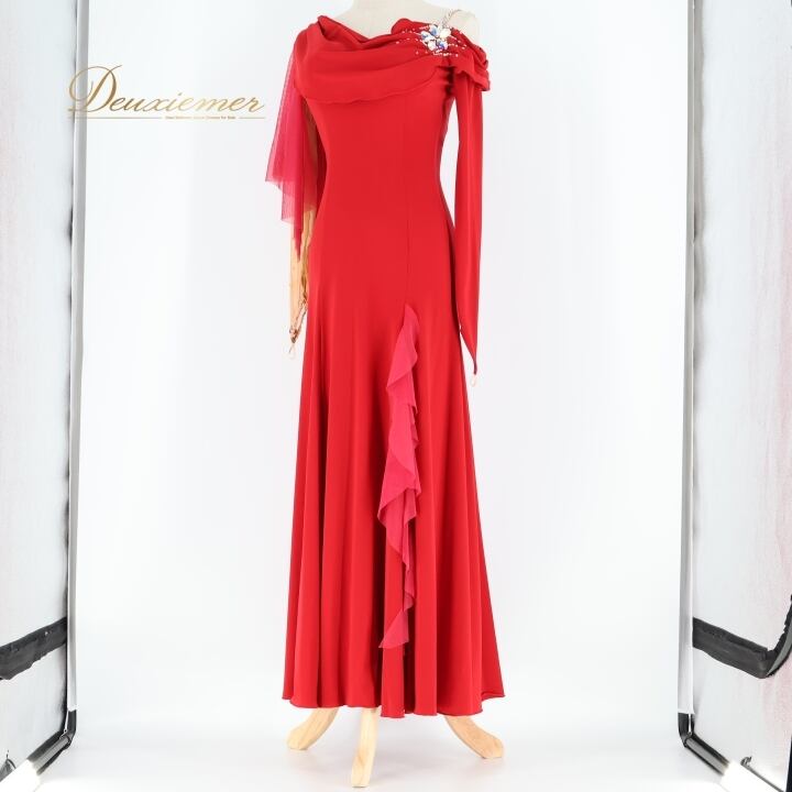 社交ダンス 衣装 チャコット Chacott ワンピース ドレス 赤 無地 スリット 上品 綺麗 華やか 伸縮 ストレッチ パーティドレス レッド系 スタイリッシュ エレガント フェミニン ダンスコンペティション おしゃれ 大人用 女性用 黒系