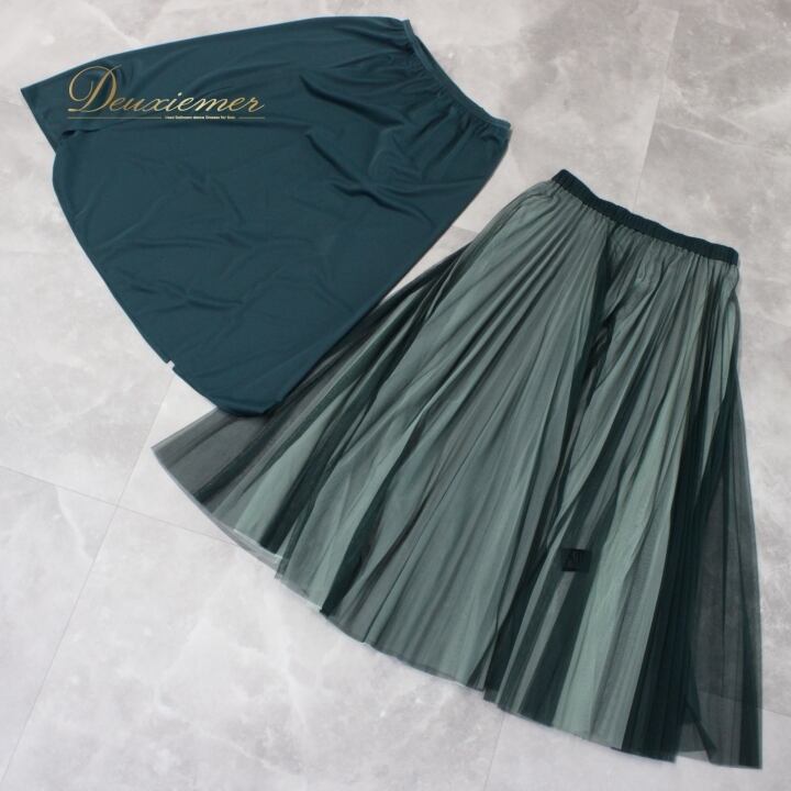 #社交ダンス #ダンス衣装 #スカート #コムサ #レッスン着 #カジュアルファッション #ウエストゴム #伸縮性 #華やか #落ち着き #ペチコート #エレガント #ファッション #ダンススタイル #グリーン #女性用トルソー #サイズ9 #ポリエステル #おしゃれ #ENUTSU
