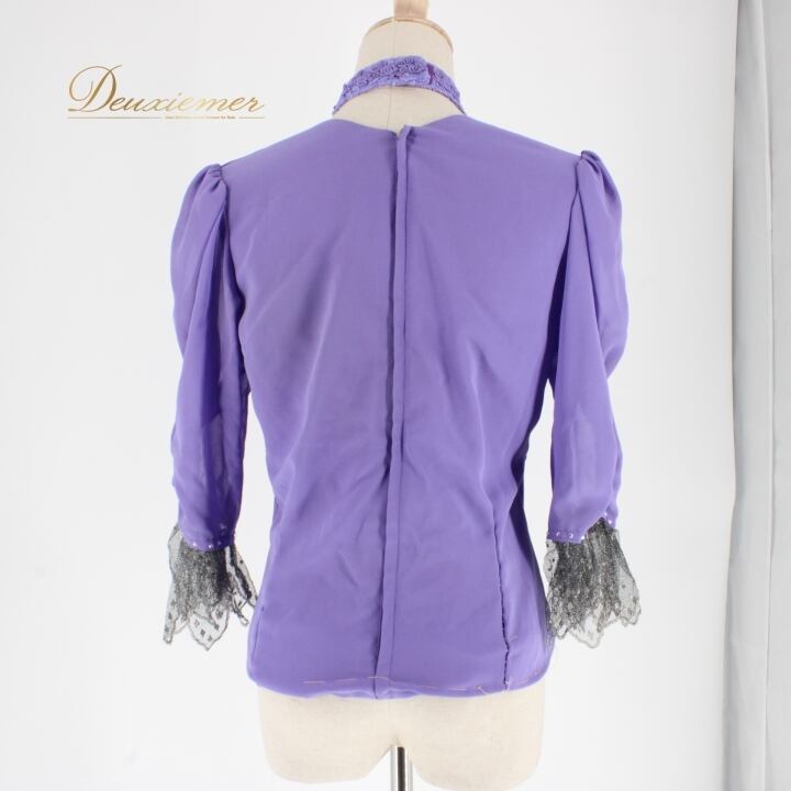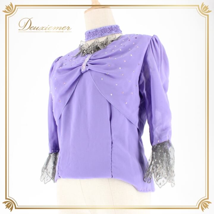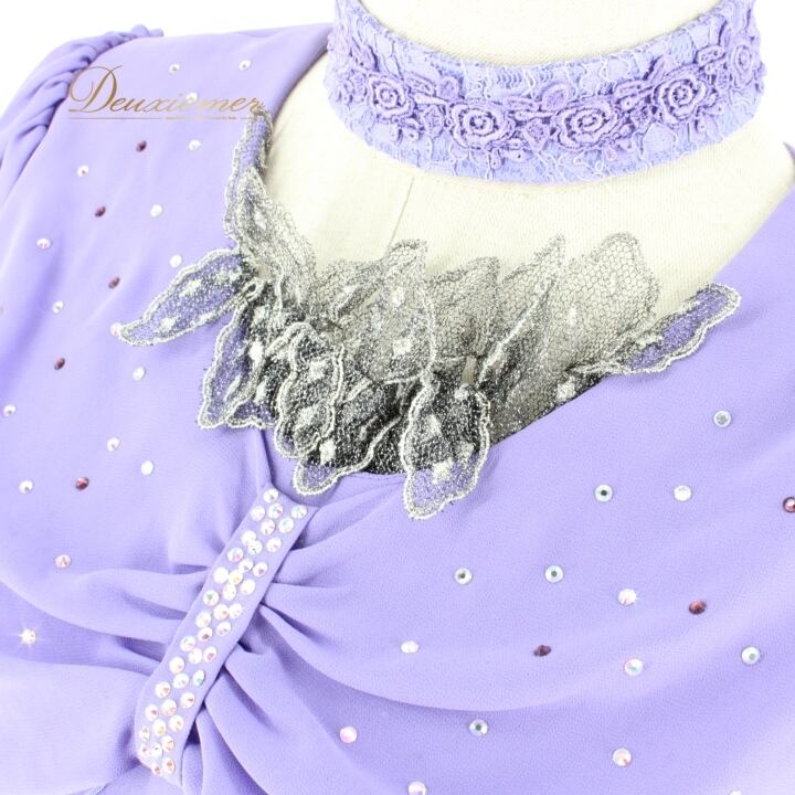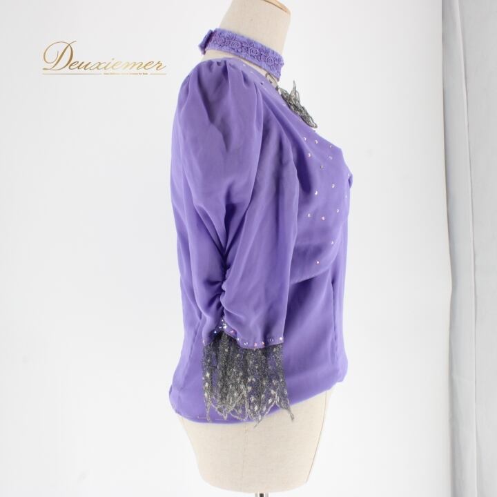 社交ダンス 衣装 スタンダード トップス レッスンウェア 紫 銀色 パープル系 シルバー系 SEKINE セキネ チョーカー ラインストーン レース 社交ダンス衣装 大人用 ダンスウェア フォーマル ステージ衣装 レッスン用 トップス Mサイズ 日本製 おしゃれ デザイン パーティー 衣装用 トレーニング用 カジュアル スタイル 伸縮性なし 輸入品 フェミニン シンプル 上品 トレンド レディース