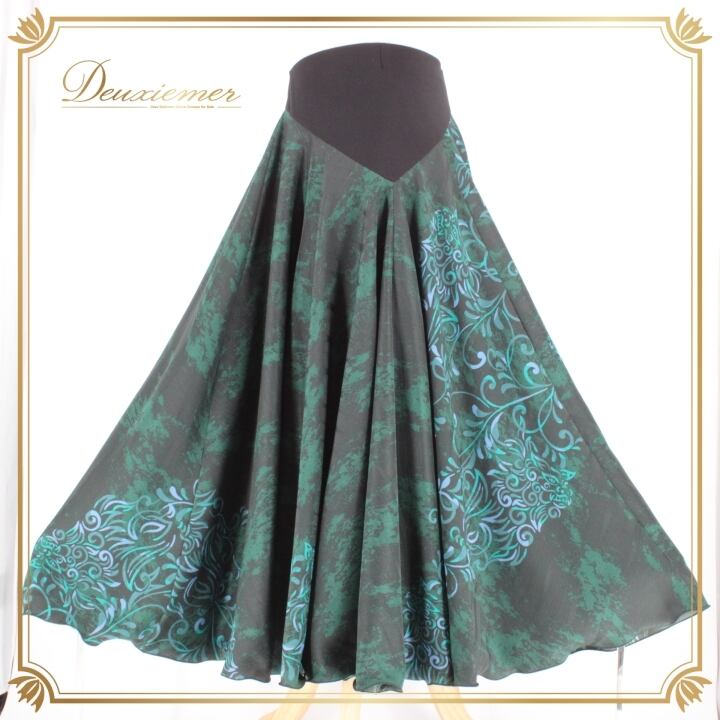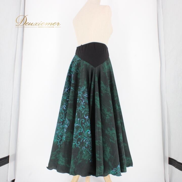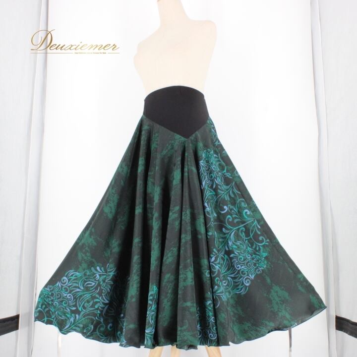 #社交ダンス #ダンス衣装 #ダンススカート #スカート #ダンスファッション #社交ダンス服 #ポリエステル #ポリウレタン #ダンススタイル #ウエストゴム #伸縮性 #ダンス映え #グリーン #ブラック #女性用トルソー #華やか #エレガント #パフォーマンス #ダンス練習 #ENUTSU