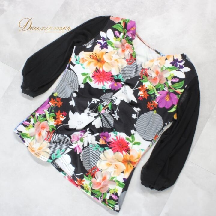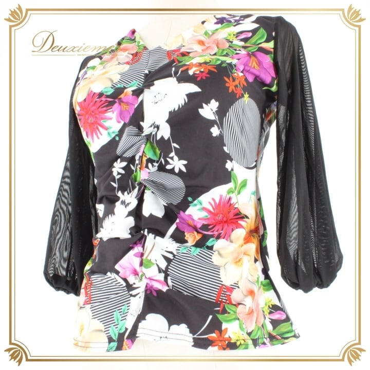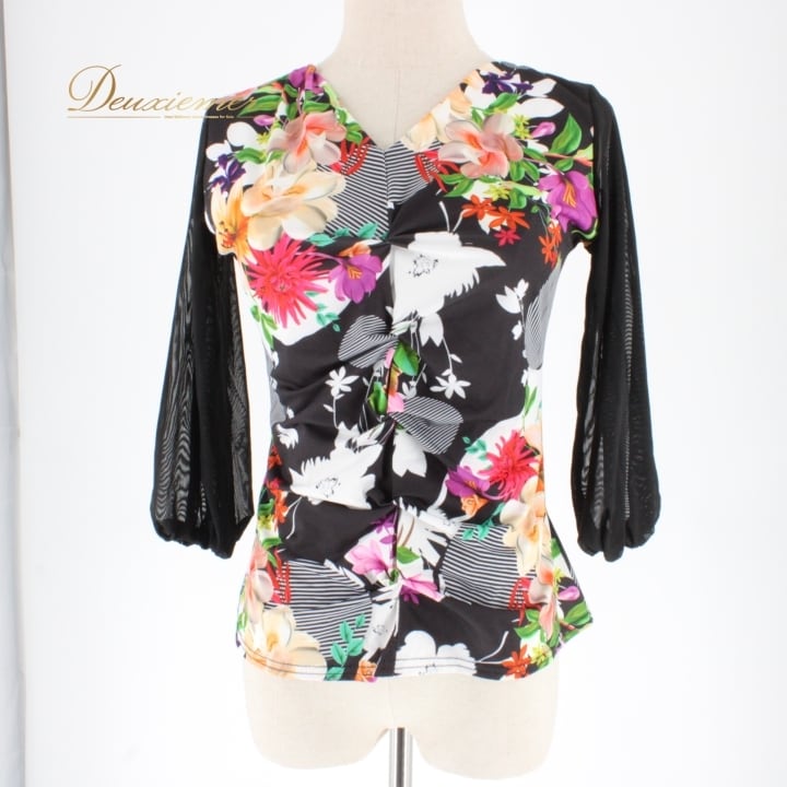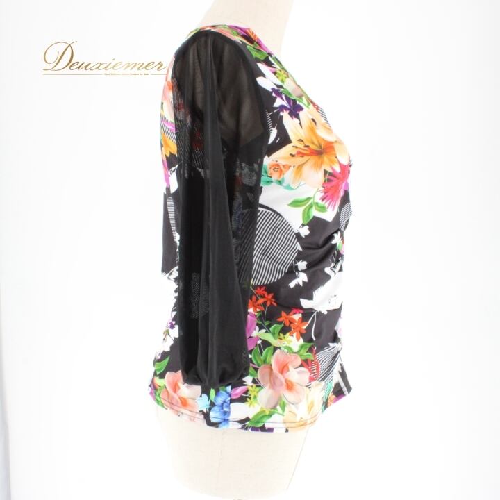 #社交ダンス #ダンス衣装 #ダンスファッション #ブラックホワイト #花柄 #マルチカラー #女性用衣装 #伸縮性 #ポリエステル #ポリウレタン #トルソー #スタイリング #おしゃれ #ダンススタイル #パフォーマンス #舞台衣装 #ダンスイベント #ミニマル #上品 #ENUTSU