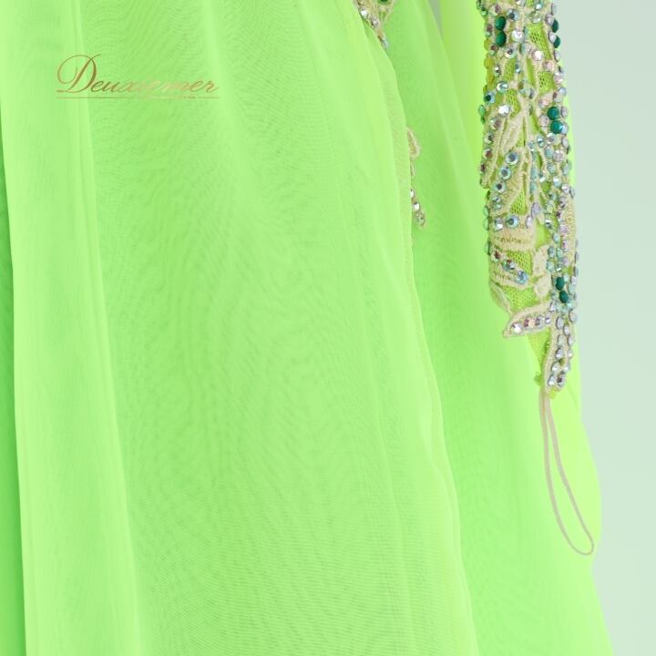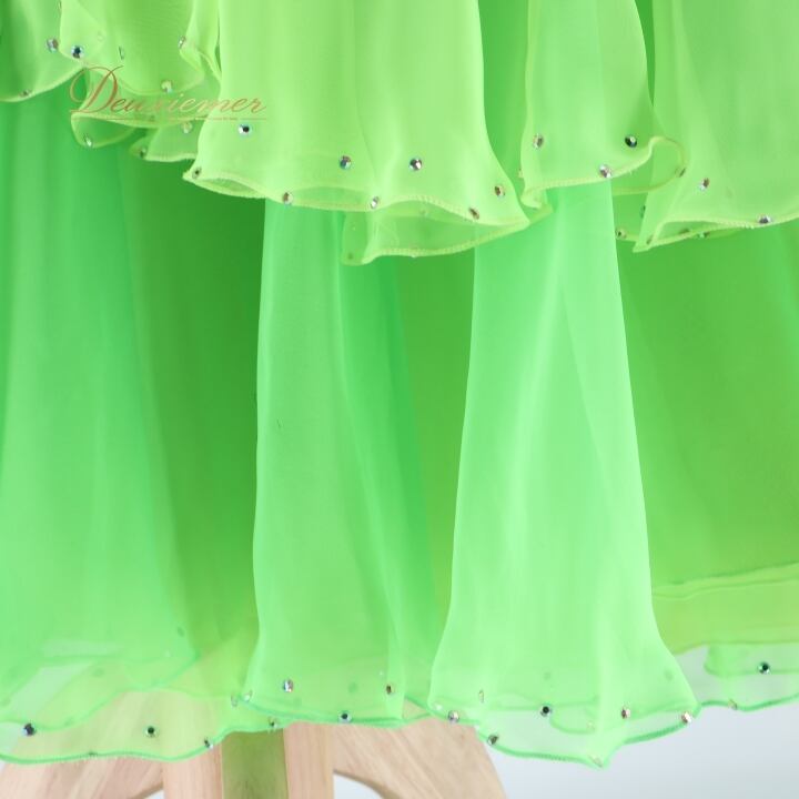 社交ダンス 衣装 スタンダードドレス ワンピース ドレス スタンダード フロート レース 黄緑 デモ 競技 ダンス パーティ 発表会 蛍光 パーティドレス グリーン系 蛍光色 フレア スカート ダンス衣装 モダンダンス おしゃれ 女性用 大人用 発表会用 フォーマル ステージ衣装 競技会 パーティーコスチューム
