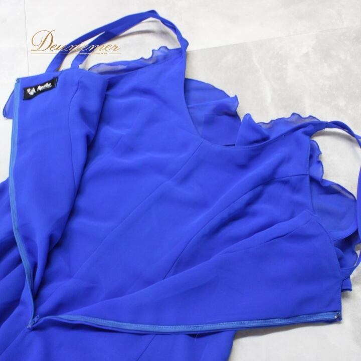 社交ダンス 衣装 スタンダード ラテン ドレス ワンピース レッスンウェア パーティドレス PAPILLON パピヨン 青 ブルー系 シンプル 上品 レッスン用 コスチューム 女性用 衣装 ドレス ビビッドカラー モダンフィーリング 上品デザイン 躍動感 108cm丈 Mサイズ パーティー用 可愛いフリル フロアロング 体型カバー 伸縮性無し ポリエステル製 クラシックスタイル ダンスウェア