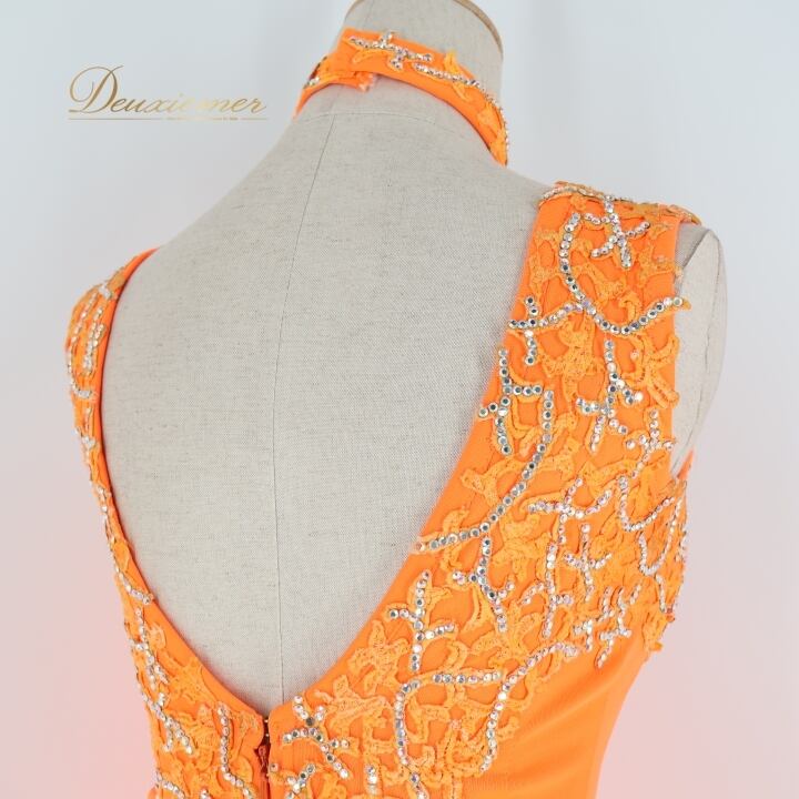 社交ダンス 衣装 ラテン ドレス ワンピース 蛍光 オレンジ フリンジ 鮮やか デモ 競技 ダンス パーティドレス パーティ 発表会 伸縮 ストレッチ オレンジ系 フリンジドレス 衣装パーティ 踊り用衣装 ラテン競技用 デモンストレーション用 ダンス用ドレス コスチューム
