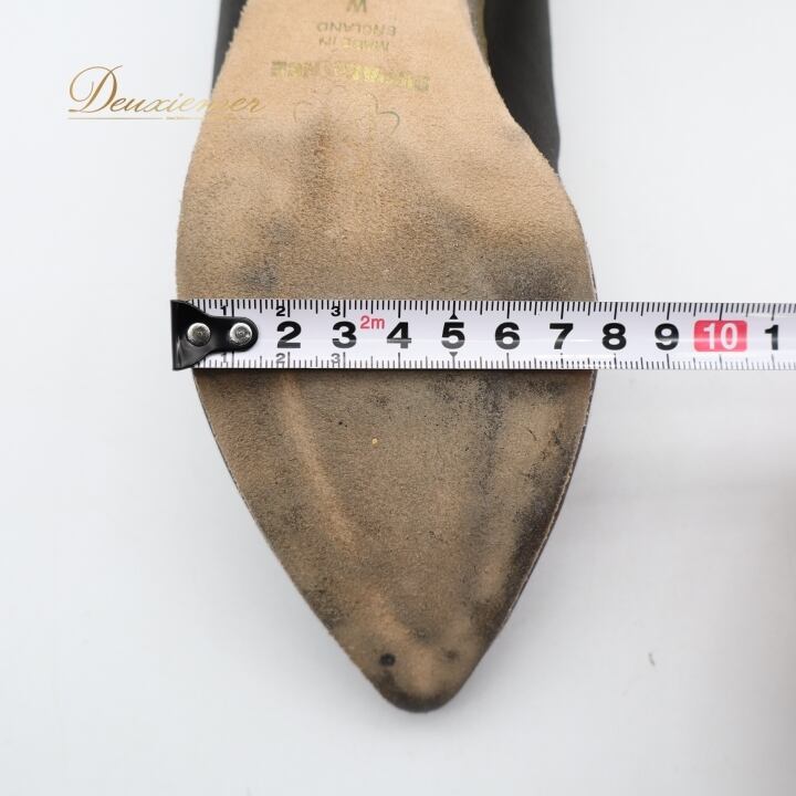 5とW表記(25cm相当)、左ヒール高さ約6cm、右ヒール高さ約6.4cm(ヒールキャップ付けた状態)