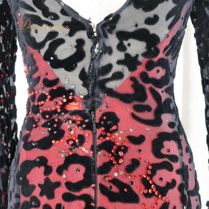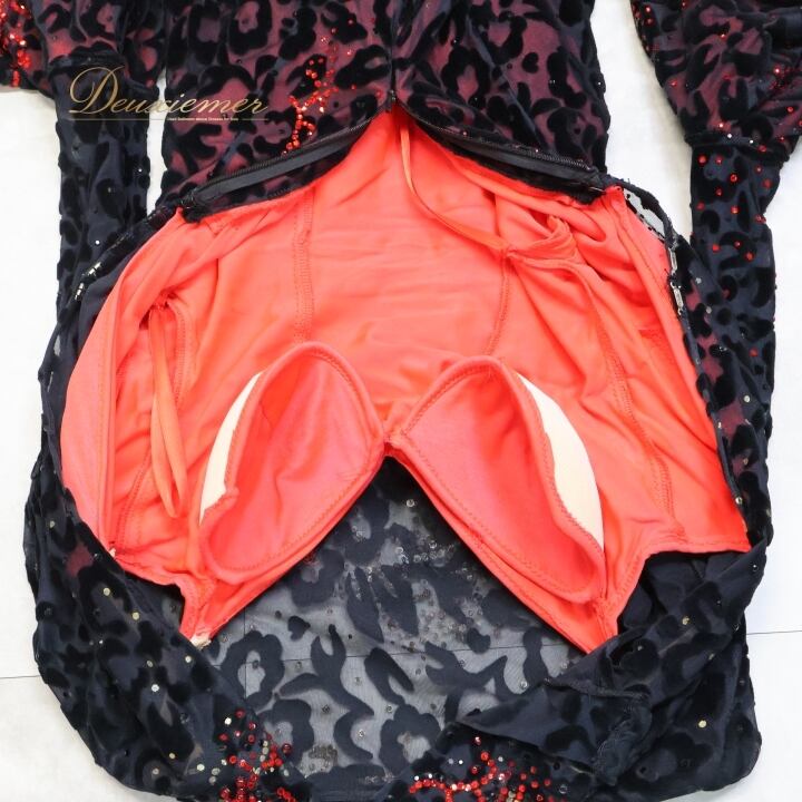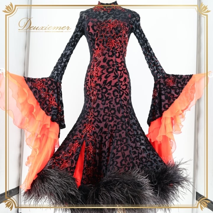 社交ダンス 衣装 スタンダードドレス ワンピース ドレス スタンダード 赤 黒 レース ベロア ファー 高級感 デモ 競技 ダンス パーティ 発表会 上品 レッド系 ブラック系 ゴージャス 大きな袖 豪華 フェミニン エレガント パーティードレス おしゃれ レディース