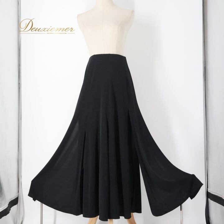 社交ダンス 衣装 スカート ブラック系 チャコット Chacott レッスン 練習 レッスンウェア 練習着 黒 無地 かわいい 華やか おしゃれ 上品 大人っぽい 軽やか ふんわり 日本製 スリット ペチコート ダンスレッスン パーティー フォーマル 日本製衣装 柔らかい ひらひら動く