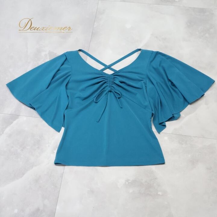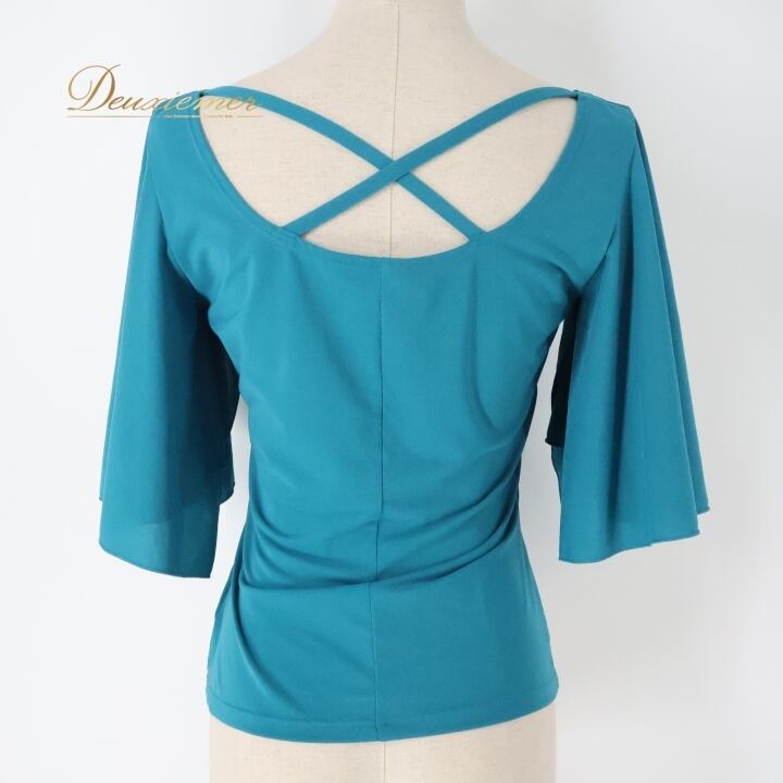 #社交ダンス #ダンス衣装 #チャコット #おしゃれ #トップス #ブラウス #女性ファッション #ダンスウェア #青緑 #ギャザー #スポーツウェア #ミニマルファッション #ダンス #衣装 #レッスン用 #モダンダンス #ダンスレッスン #パフォーマンス #趣味 #ENUTSU