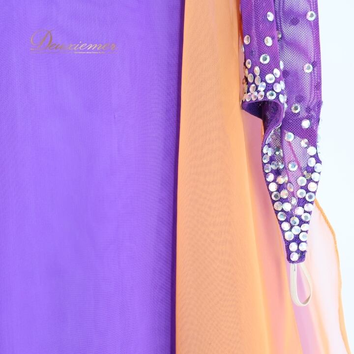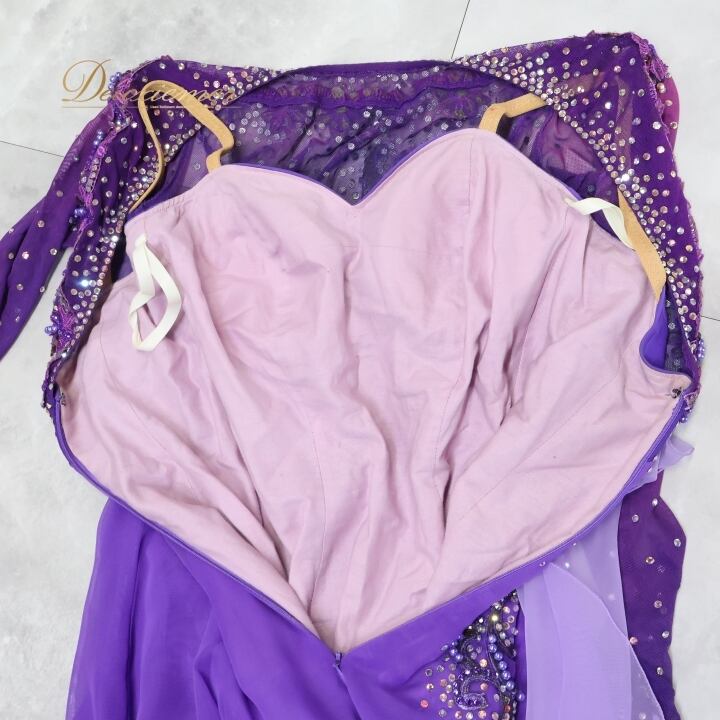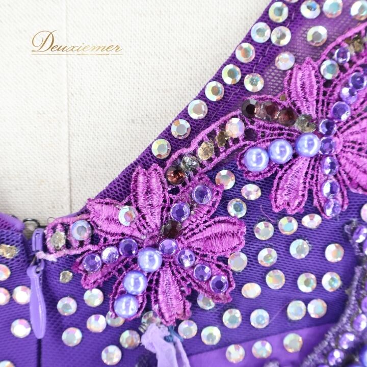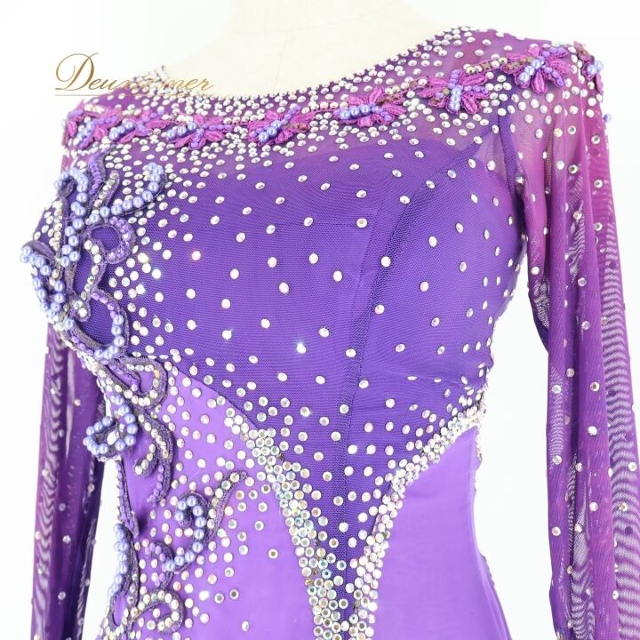 社交ダンス 衣装 スタンダードドレス ワンピース ドレス スタンダード 紫 フロート レース デモ 競技 ダンス パーティ 発表会 パープル系 エレガント 上品 おしゃれ フェミニン ステージ衣装 パーティー用 ダンスパフォーマンス