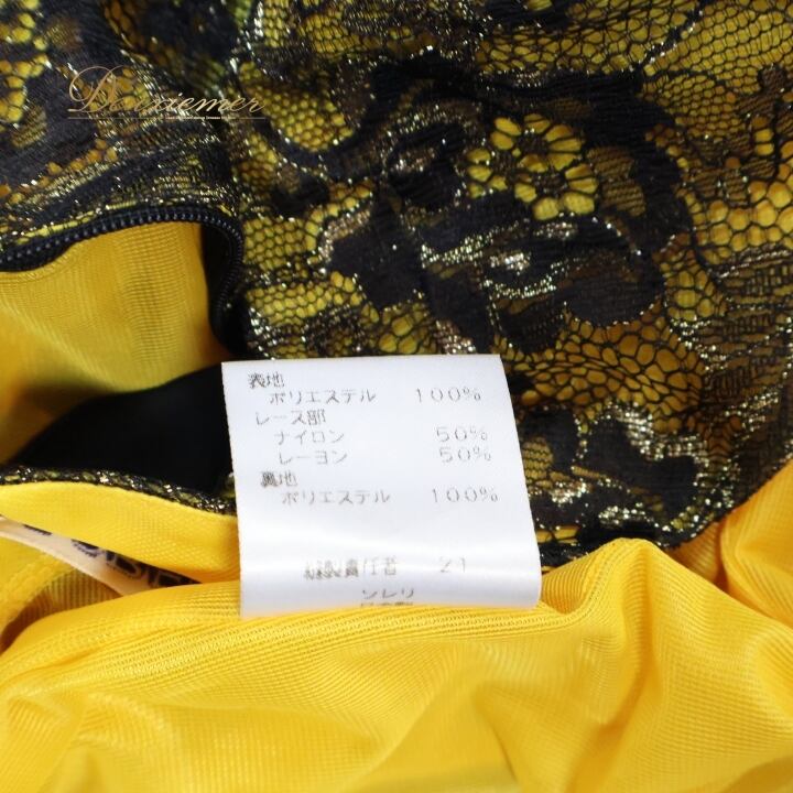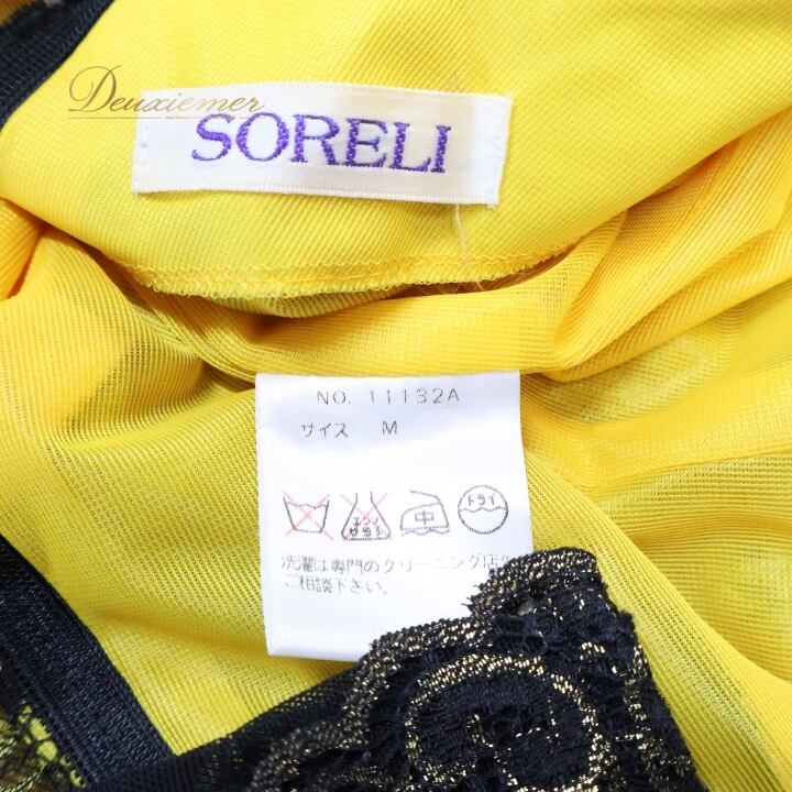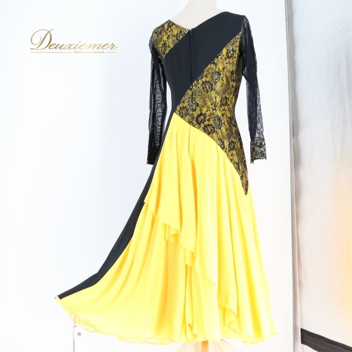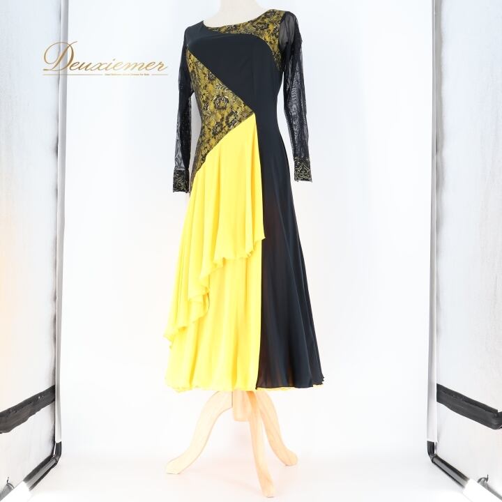 社交ダンス 衣装 ワンピース ドレス 黄色 黒 レース SORELI ソレリ 日本製 パーティドレス 発表会 綺麗 上品 軽い ブラック系 イエロー系 フォーマルドレス ステージ衣装 社交ダンス用 おしゃれ レディース Mサイズ