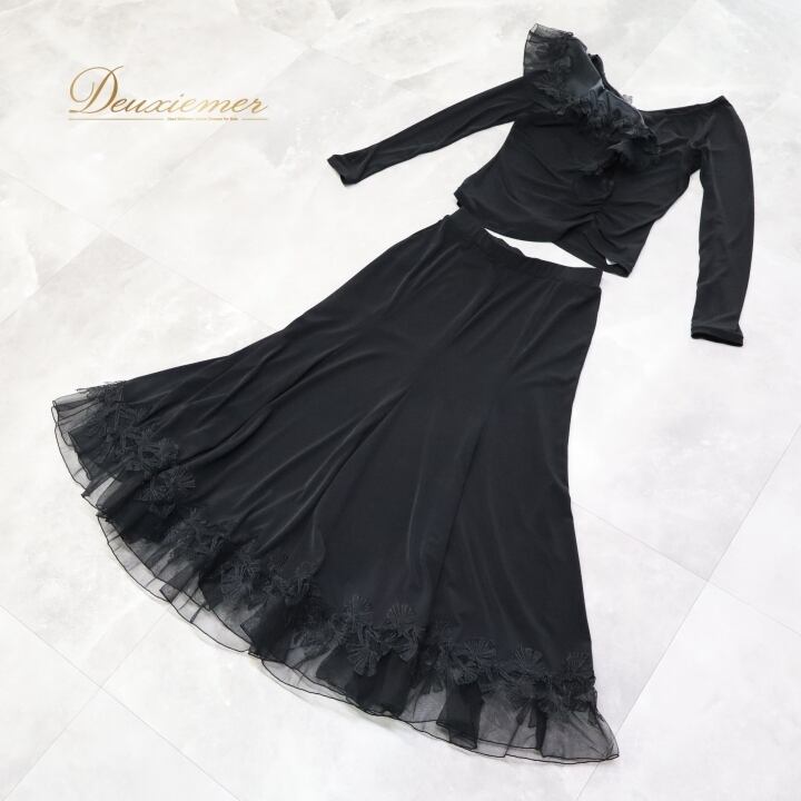 #社交ダンス #ダンス衣装 #ツーピース #セットアップ #上品 #フリル #ブラック #Chacott #チャコット #日本製 #ダンスファッション #スカート #伸縮性 #ウエストゴム #ポリエステル #ダンススタイル #ダンスウェア #パフォーマンス #舞台衣装 #ダンス用品 #ENUTSU