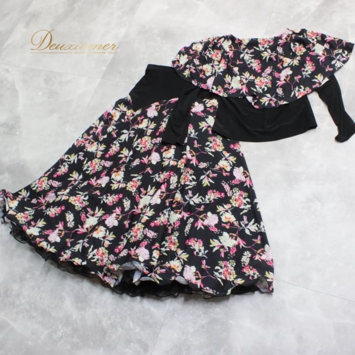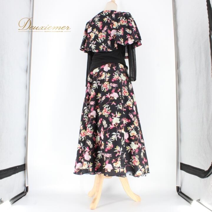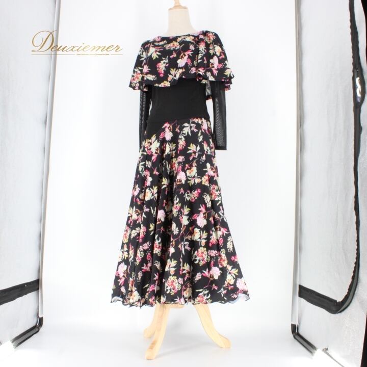 #社交ダンス #ダンス衣装 #ダンスファッション #セットアップ #花柄 #ブラックピンク #ダンススカート #コスチューム #ポリエステル #ポリウレタン #伸縮性 #ウエストゴム #ラバティン #華奢見え #優雅な動き #二重スカート #女性用トルソー #ダンススタイル #ダンスイベント #ENUTSU