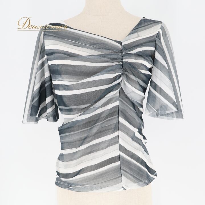 社交ダンス 衣装 トップス ブラウス ホワイト系 チャコット Chacott 練習 レッスン 伸縮 ストレッチ かわいい 日本製 パーティー 透け感 ダンス衣装 イベント ステージ ブラック系 グレイ系