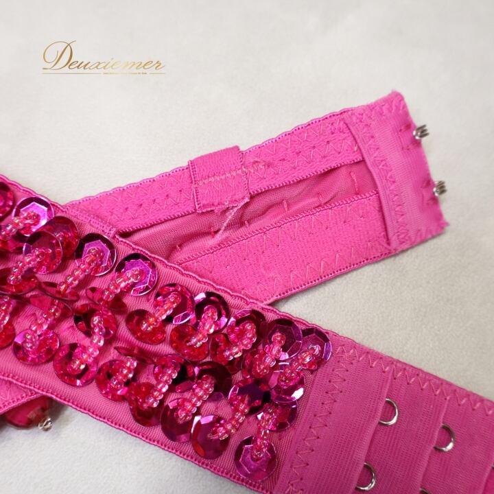 ベリーダンス オリエンタル 衣装 トップス ベルト セット ピンク系 ラインストーン スパンコール 豪華 装飾 華やか キラキラ ダンス衣装 イベント ステージ 鮮やか かわいい フリンジ