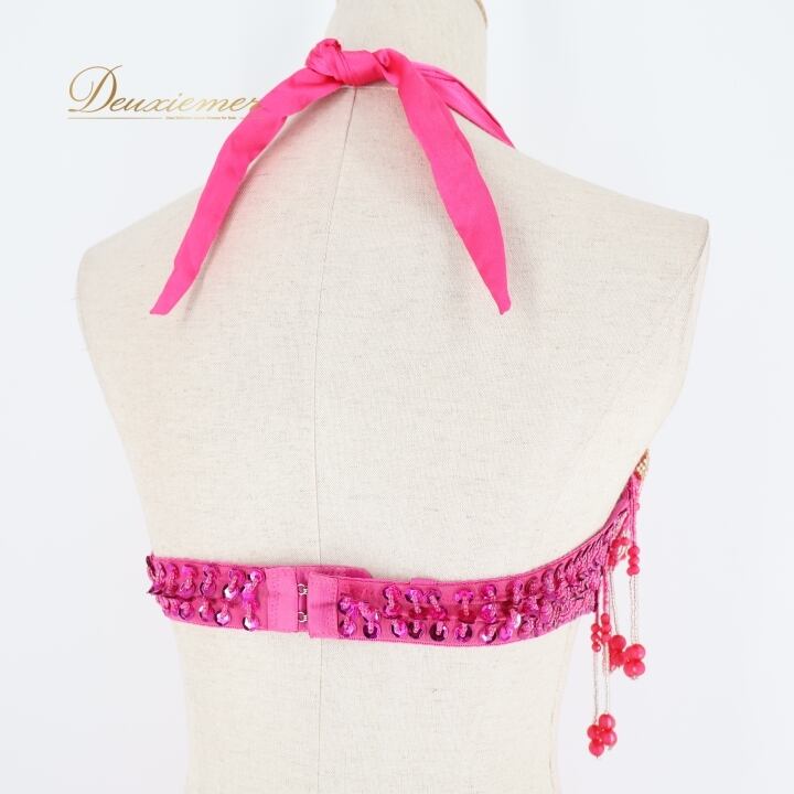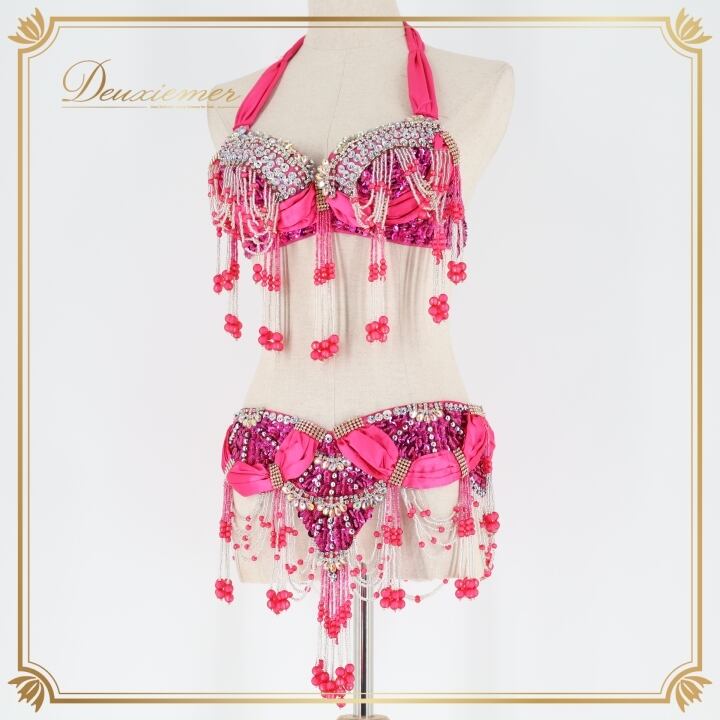 #ベリーダンス #オリエンタル衣装 #ダンス衣装 #ピンク衣装 #ラインストーン #ビーズ装飾 #ダンスパフォーマンス #コスチューム #女性用衣装 #ダンススタイル #エスニックファッション #ストリートダンス #文化交流 #トルソー #ファッション #アート #ダンスイベント #パーティー #着こなし #ENUTSU